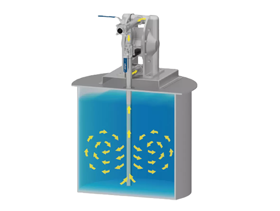 氣動攪拌裝置是一個隔膜泵和一個攪拌器的組合產品,可以僅使用一個設備執行泵送和攪拌兩項任務。